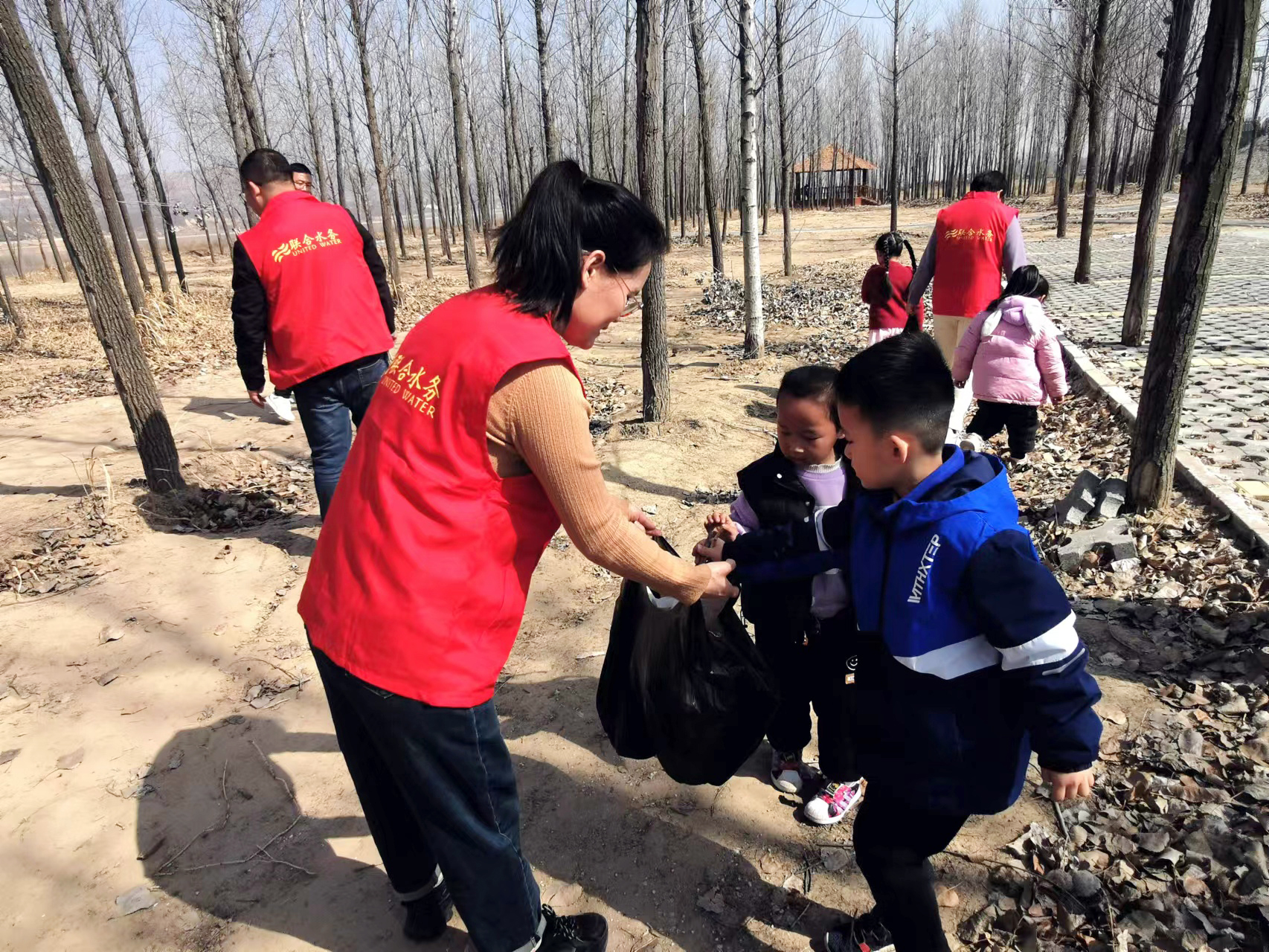 大家發(fā)揚(yáng)不怕臟不怕累的精神,擼起袖子,邁開(kāi)步子,將散落在樹(shù)林各處的煙頭、紙巾、編織袋等垃圾全部打包收起,鼓鼓囊囊的垃圾袋被志愿者們集體轉(zhuǎn)運(yùn)帶走,扶翠亭附近樹(shù)林里的垃圾也被清理干凈。看著整潔清爽的楊樹(shù)林,志愿者和孩子們的臉上露出了開(kāi)心燦爛的笑容。大家稍作休息之后,又帶著飽滿的激情轉(zhuǎn)向了下一片區(qū)域。
