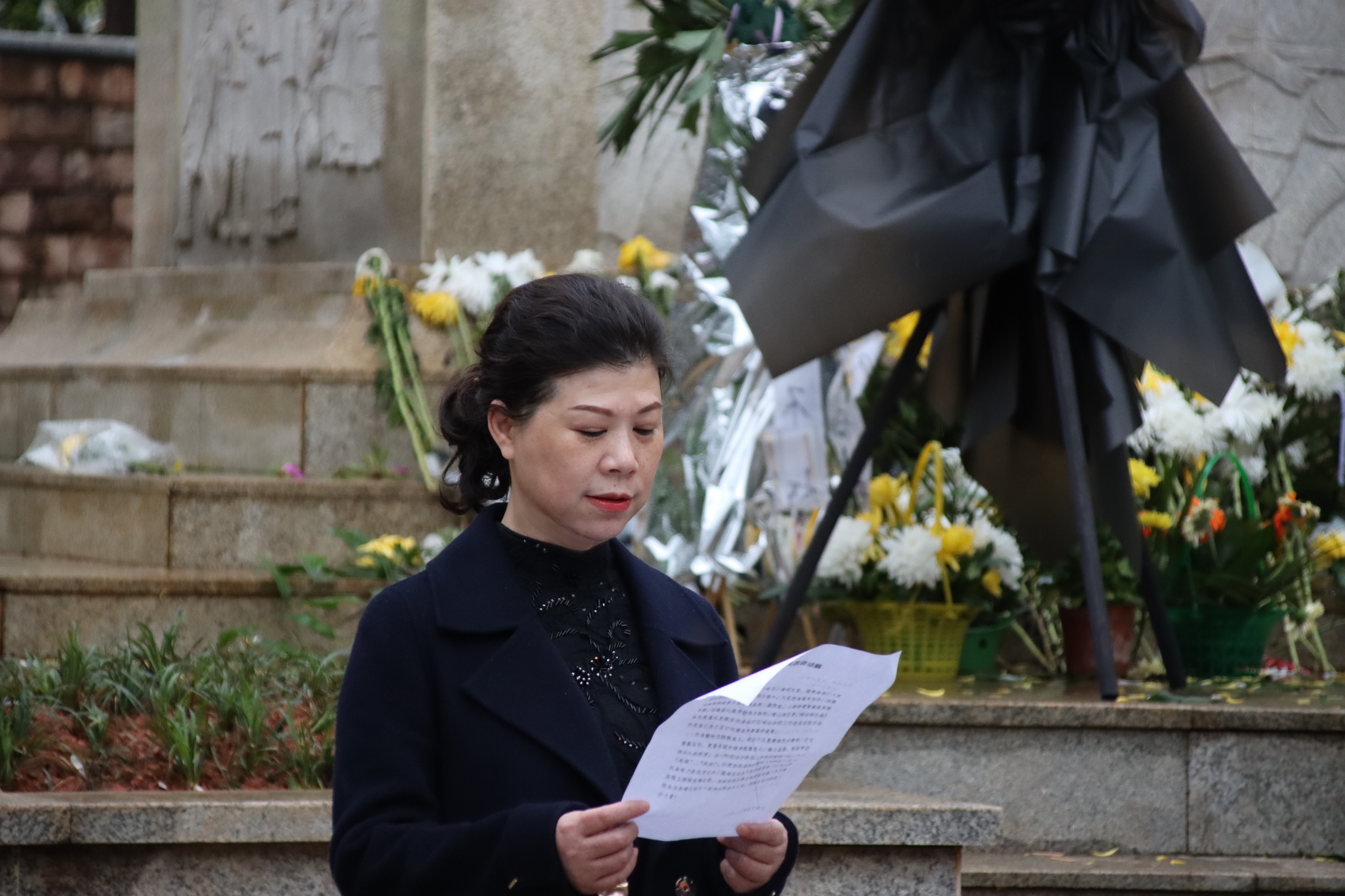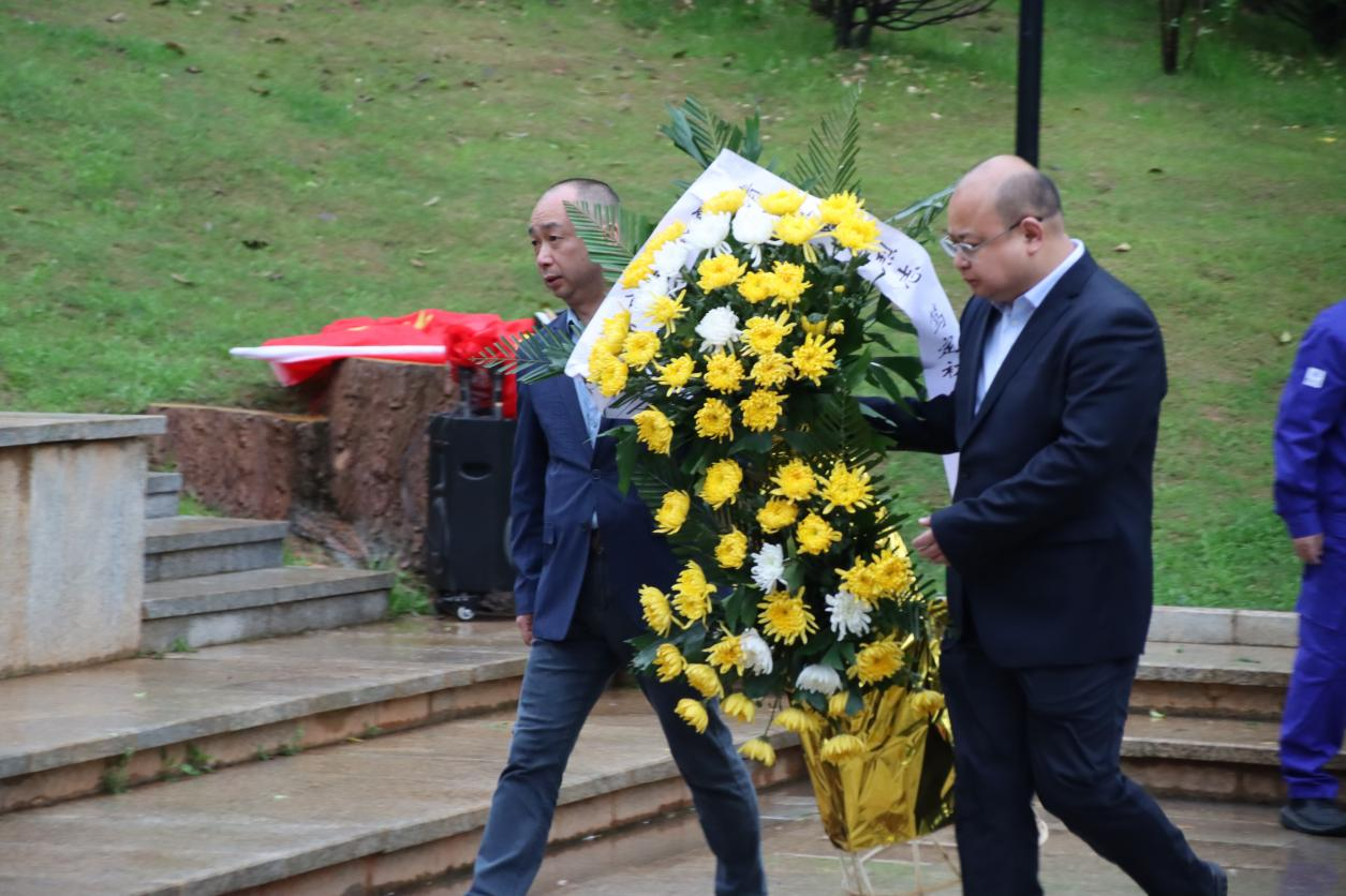圖:緬懷烈士 蒼松陣陣,翠柏行行,在迷蒙春雨中,革命烈士紀(jì)念碑巍峨高聳,襯托著一九五烈士陵園的莊嚴(yán)肅穆。上午9時(shí)許,緬懷英烈儀式在中共咸寧聯(lián)合水務(wù)有限公司黨總支陳紅書記的主持下正式開始。 鮮花獻(xiàn)英烈,哀思祭忠魂。聯(lián)合水務(wù)咸寧區(qū)域總經(jīng)理陶瑛女士帶領(lǐng)公司干部職工向?yàn)橹袊?guó)革命事業(yè)英勇獻(xiàn)身的烈士們默哀并三鞠躬,表達(dá)對(duì)革命先烈的深切緬懷和最崇高的敬意。在一九五烈士紀(jì)念碑基座前,由咸寧聯(lián)合水務(wù)有限公司、咸寧聯(lián)合市政工程有限公司、咸寧市聯(lián)太生態(tài)環(huán)境科技有限公司、咸寧思源水務(wù)有限公司敬獻(xiàn)的四個(gè)花籃一字排開,花籃綢緞上寫著“緬懷先烈祭英魂,撫今追昔思奮進(jìn)”挽聯(lián),伴隨著獻(xiàn)花曲,一朵朵黃白相間的菊花在風(fēng)中搖曳,寄托著我們對(duì)先烈的無限哀思。隨后,全體參與人員緩步繞行一九五烈士紀(jì)念碑一周,深情瞻仰烈士紀(jì)念碑,深切緬懷革命先烈的豐功偉績(jī)。