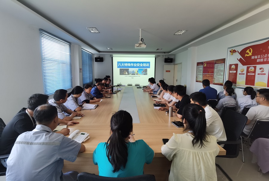 培訓會上,肖亞亞經理使用圖文并茂的講解形式,從特殊作業的定義、分級、作業要求、防護措施等方面為我們進行了全面講解,將安全植根于每一個人心中;張曉潔從有限空間的定義和分類、作業主要風險、作業安全管控、事故應急救援四個方面為我們講述了有限空間安全作業的基本知識,增強了員工在有限空間作業時“先通風,再檢測,后作業”的安全意識;付志強給大家分享了管網作業的安全要求、不安全行為、作業危險源辨識、事故現場急救等安全知識。