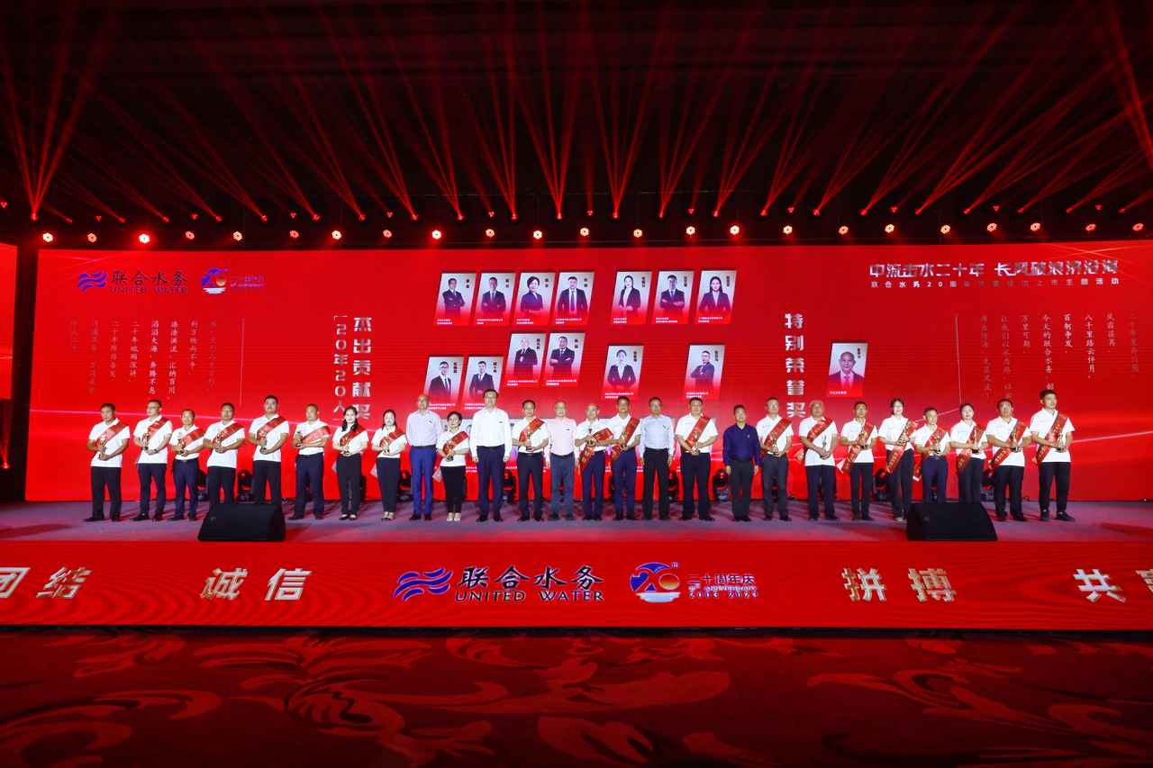 榮光隨行 傳遞金流之美 歲月流金,榮光隨行。聯合水務能在20年的浪潮中不斷航行,離不開廣大同事們的堅定追隨;顒犹貏e頒發“聯合水務20年20人杰出貢獻獎”和“特別榮譽獎”,隆重表彰20年來為聯合水務做出突出貢獻的20人和宿遷項目“開朝元老”夏承光。3位“杰出貢獻獎”獲獎代表周允勝、沈文奇和肖亞亞分別發表自己的獲獎感言,滿懷激動地分享自己的心路歷程,表達感恩之心。
