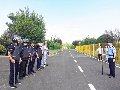 一番短暫練習之后,模擬演練正式開始。本次演練模擬的是1名暴徒持兇器欲強行進入廠區圖謀不軌,安保人員發現后立即上報,并手持鋼叉、防暴盾等工具與“暴徒”展開周旋阻止其進入,公司立即啟動反恐應急預案,第一時間向上級公安機關報警,并迅速組織公司安保人員及在廠員工共同與“可疑人員”抵抗。派出所民警在接到報警后立即出警,和公司人員一起將“可疑人員”控制并帶走。