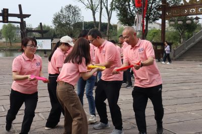 上午9時,團建隊伍在荊州公司廠區門口集合,統一乘車奔赴此次的活動目的地—莫愁村。一路上,大家歡聲笑語,熱情高漲,興致勃勃。經過兩個半小時的車程,團建隊伍抵達了本次團建活動的第一站——莫愁村景區。下午14時,我們整裝待發,前往本次熔煉團隊的場所-莫愁屯廣場。古老神圣的場地與熱血奮發的團隊完美適配。工作小組緊鑼密鼓布置場地,講述團建項目規則和要求,全情投入的熔煉之賽在“抱團取暖”分組游戲中開拔啟航。 在荊州公司總經理鄭彬的指導下,我們先后開展了無敵風火輪、珠行萬里、摸石過河三項團體競賽項目。無敵風火輪培養了隊員團結一致,密切合作,克服困難的團隊精神,加強了服從指揮、一絲不茍的工作態度。珠行萬里中隊員們能強烈感受團隊間有效的緊密配合、有序銜接,大家自發為共同的目的以及團隊的責任感做好每一個環節。最具挑戰的當屬摸石過河,它是耐心和速度的較量,既提高了團隊協作能力和戰略戰術,又訓練了團隊內部的協調能力,增強了隊員間的相互信任和理解。