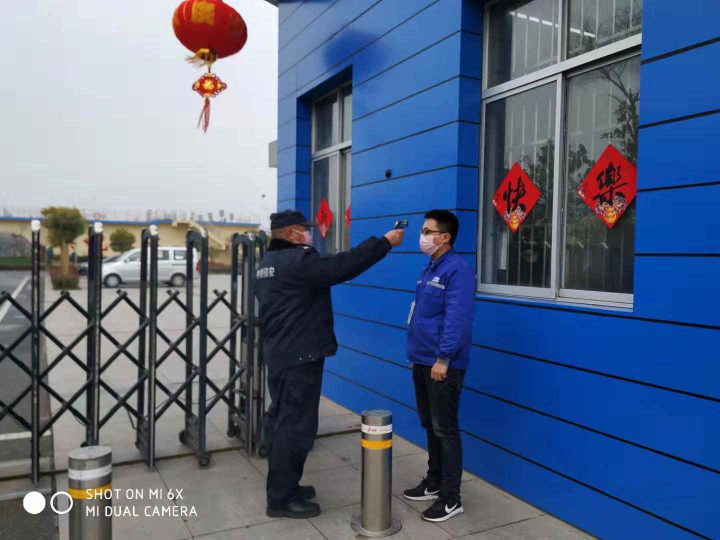 圖:進入廠區(qū)前對工作人員進行嚴格的體溫監(jiān)測