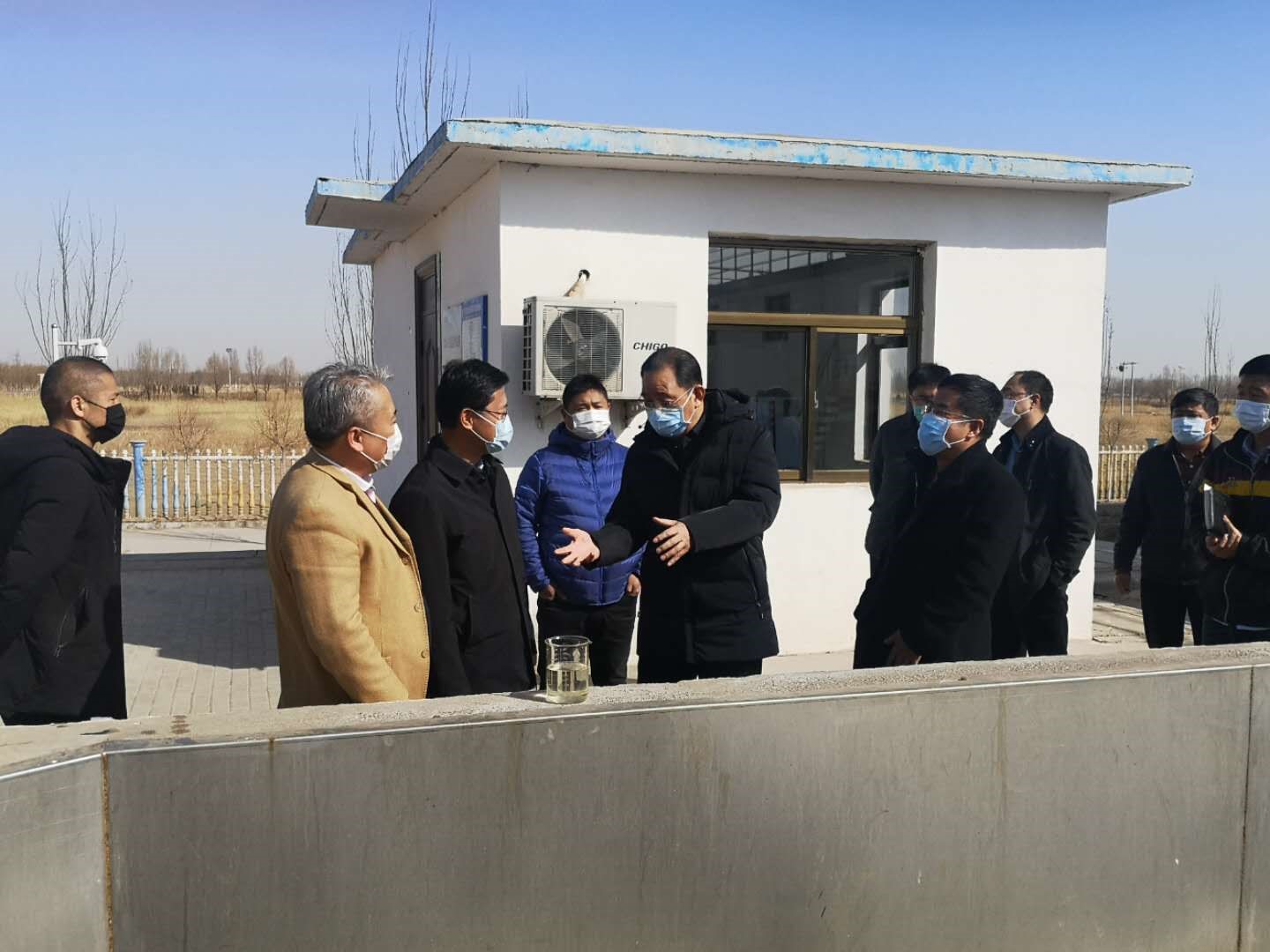 姜書記一行來到賀蘭聯合水務公司后,首先聽取了公司關于新冠肺炎防控措施落實及企業復工復產工作情況的介紹;隨后在周總的帶領下又來到了中控室,就工藝運行、監測監控等情況進行了詳細的了解;最后,姜書記一行在周總的陪同下又來到了污水廠出水總排口,實地查看出水水質,了解在線監測情況。在檢查指導工作的過程中,姜書記要求大家要堅定信心、鼓足干勁,堅持標準不降、要求不松、力度不減,扎實做好“四返”人員信息管理、身份核查、體溫監測等工作,確保環環相扣、銜接有序,防止出現“真空地帶”,奮力奪取疫情防控阻擊戰的全面勝利