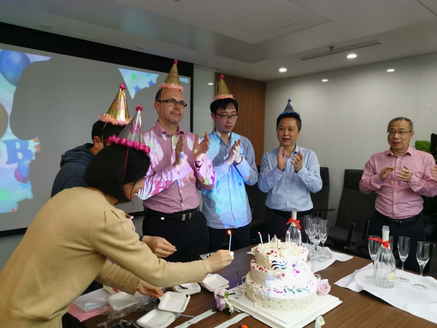 最是一年春好處,絶勝花柳滿門廳。伴著和煦的春風,趁著“五一”的來臨,聯合水務集團總部新辦公室落成慶典隆重舉行,同期舉辦2020年一季度總部員工集體生日慶祝活動。 2020年4月29日下午,活動在聯合水務集團上海總部新增新裝的南豐城16樓辦公室舉行。聯合水務集團董事長兼總裁俞偉景先生、聯合水務集團高級副總裁劉猛先生、聯合水務集團高級副總裁陳樵先生、聯合水務集團高級副總裁兼CFO James Beeson先生、上海總部全體常駐員工、孟加拉項目公司部分員工共同參與了此次慶典暨生日慶祝活動。