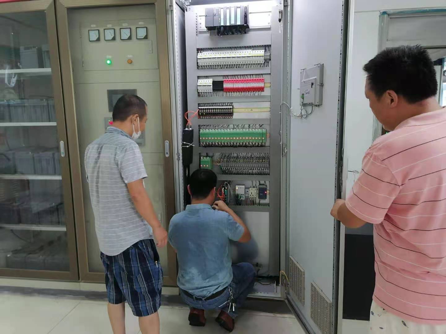 雨一直未停,甚至越下越大。待我5點(diǎn)20分到達(dá)王英水廠時(shí),主管鄭健已經(jīng)到達(dá),向我匯報(bào)已通知機(jī)電部電氣工程師萬(wàn)朝偉、網(wǎng)絡(luò)工程師陳詩(shī)軍。十余分鐘,機(jī)電設(shè)備部萬(wàn)朝偉、陳詩(shī)軍二位同時(shí)到達(dá)王英水廠,濕透的衣服和滿臉的雨水絲毫不影響他們的工作,他們麻利的拿起工具投入緊張的排查中。經(jīng)過(guò)一個(gè)多小時(shí)的緊張排查,終于查明原因,原來(lái)是二級(jí)泵PLC柜工程網(wǎng)絡(luò)交換機(jī)模塊故障。接著,二位機(jī)修人員立馬更換備用交換機(jī),于7點(diǎn)50分信號(hào)恢復(fù)正常,機(jī)組開(kāi)停、調(diào)頻都可遠(yuǎn)程操控,恢復(fù)正常運(yùn)行,保證了城區(qū)供水正常。