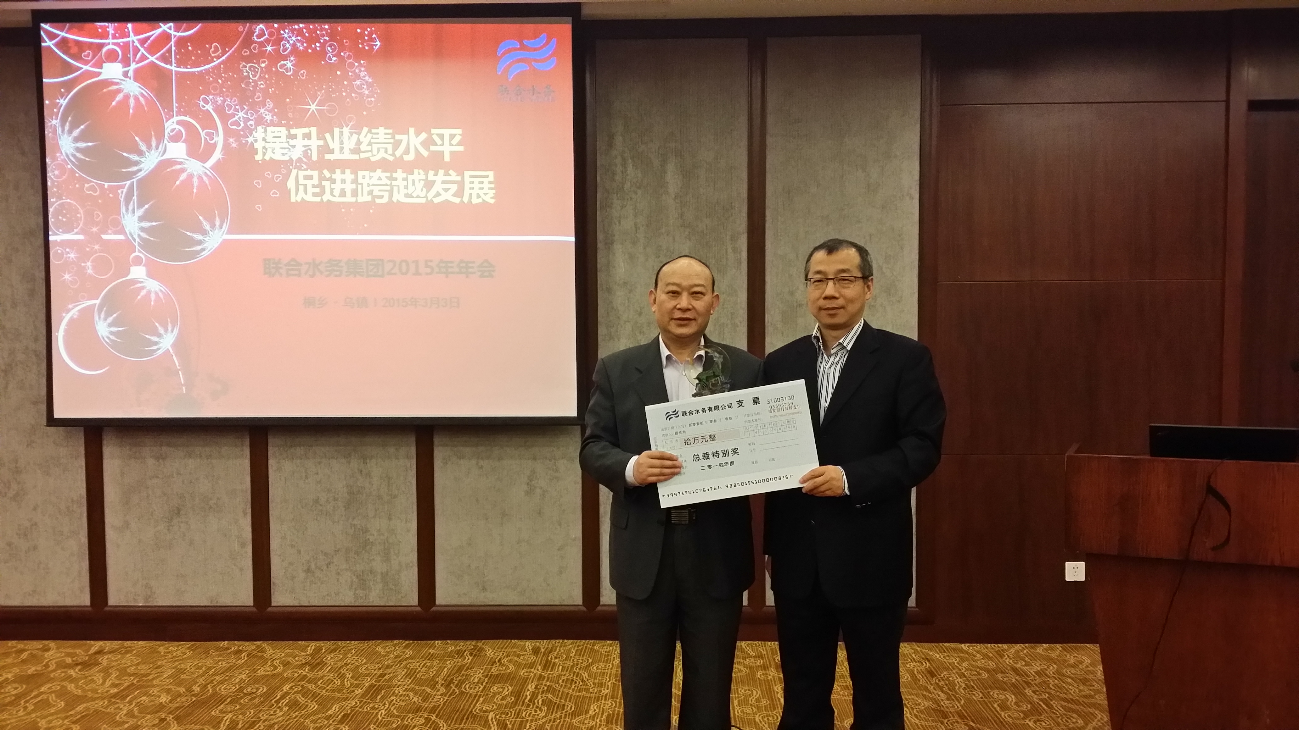 『夏總榮獲“總裁特別獎(jiǎng)”』 上善若水 源遠(yuǎn)流長(zhǎng) 壯士暮年而基業(yè)長(zhǎng)青。作為聯(lián)合水務(wù)項(xiàng)目團(tuán)隊(duì)“元老”之一,夏承光將前大半生獻(xiàn)給了水務(wù)事業(yè),獻(xiàn)給了聯(lián)合水務(wù)的成長(zhǎng)壯大。他說,水乃生命之源,滋養(yǎng)萬物而生生不息,與水結(jié)緣,與聯(lián)合水務(wù)結(jié)緣,踐行聯(lián)合水務(wù)“供優(yōu)質(zhì)之水、服誠(chéng)信之務(wù)”的經(jīng)營(yíng)宗旨,我們付出,我們努力,我們奮斗,城市可以發(fā)展,社會(huì)可以進(jìn)步,老百姓生活水平可以提高,我們雖苦猶榮,是值得的。長(zhǎng)風(fēng)破浪會(huì)有時(shí),人間正道是滄桑,使命光榮,任重道遠(yuǎn)。在夏承光老一輩聯(lián)合水務(wù)人的帶領(lǐng)與感召下,一代代聯(lián)合水務(wù)人將不忘初心,接續(xù)奮斗,開新天,辟高地,再創(chuàng)未來。