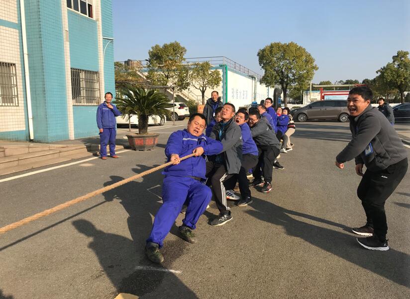 下午2點,陽光明媚、微風拂面,隨著一聲響亮的哨響,員工趣味活動正式拉開帷幕。第一個項目是比拼力量和團隊協作能力的傳統項目拔河團體賽:根據男、女員工比例平均分配為葉向上隊、劉友清隊,三局兩勝。比賽一開始就進入白熱化階段,賽場上吶喊聲、助威聲此起彼伏,盡管劉友清隊已使出渾身解數,但葉向上隊在徐正舟、陶楊等猛男的力量加持下以2:1的比分獲勝。