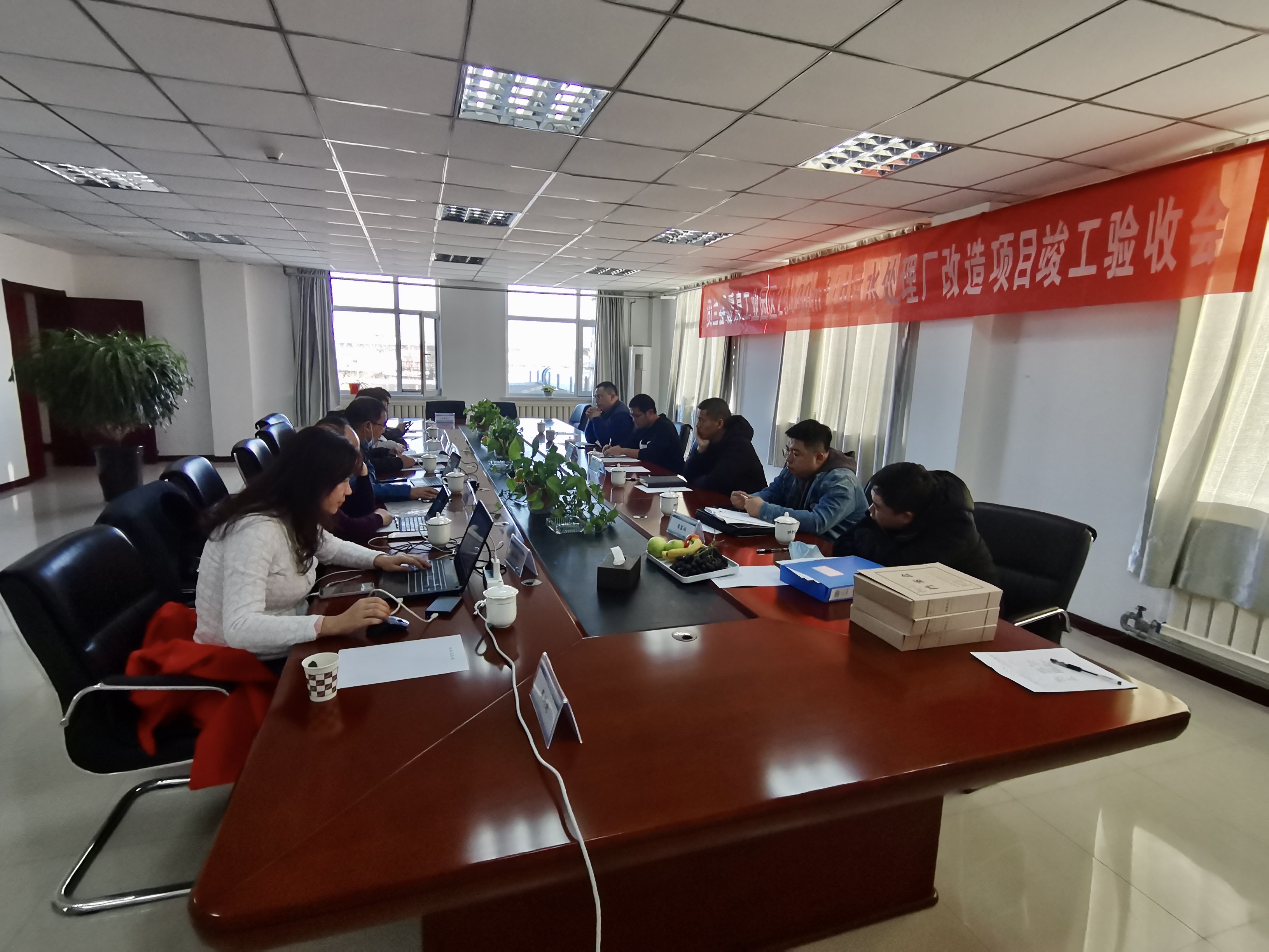 12月20日下午,聯(lián)合水務(wù)寧夏鴻澤凈水有限公司組織賀蘭縣質(zhì)檢站、工業(yè)園區(qū)管委會(huì)、建設(shè)單位、勘察單位、設(shè)計(jì)單位、監(jiān)理單位、施工單位組成項(xiàng)目竣工驗(yàn)收部門,對暖泉工業(yè)園區(qū)25000m3/d污水處理廠升級改造工程進(jìn)行驗(yàn)收。 驗(yàn)收部門勘查了現(xiàn)場,隨后在鴻澤凈水公司會(huì)議室進(jìn)行竣工驗(yàn)收會(huì)。在質(zhì)檢站監(jiān)督下,各參建方在會(huì)上對本工程建設(shè)做出總結(jié),一致通過了竣工驗(yàn)收。