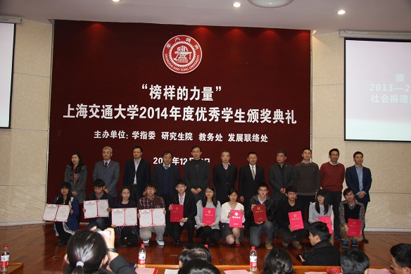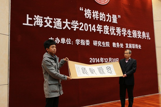 2014年12月30日下午,“榜樣的力量”——上海交通大學(xué)2014年度優(yōu)秀學(xué)生頒獎典禮在交大閔行校區(qū)陳瑞球樓報(bào)告廳舉行。上海交通大學(xué)黨委書記姜斯憲、黨委副書記朱健、副校長張安勝、副校長徐學(xué)敏,知名教授劉西拉、俞勇、李亦中、施索華,各院系單位負(fù)責(zé)人、設(shè)獎單位代表及部分學(xué)生代表出席了會議。聯(lián)合水務(wù)集團(tuán)董事長兼總裁俞偉景及其他捐贈方負(fù)責(zé)人共同出席并為捐贈獎學(xué)金的獲獎?wù)哌M(jìn)行頒獎。 2014年6月,聯(lián)合水務(wù)集團(tuán)出資壹佰萬元人民幣,在交大設(shè)立了“上海交通大學(xué)聯(lián)合水務(wù)獎學(xué)金”,用于獎勵在思想政治上追求上進(jìn)、成績優(yōu)秀、積極組織和參加學(xué)校社會活動與公益活動、在學(xué)校和學(xué)生中有積極影響的優(yōu)秀學(xué)生。今年共有來自環(huán)境科學(xué)與工程學(xué)院、機(jī)械與動力工程學(xué)院、安泰經(jīng)濟(jì)與管理學(xué)院、致遠(yuǎn)學(xué)院的14名學(xué)生獲得了該項(xiàng)獎學(xué)金。 為表達(dá)對設(shè)獎企業(yè)的感謝,書畫篆刻協(xié)會焦點(diǎn)同學(xué)代表獲獎?wù)呦蛴醾ゾ跋壬浰土怂孕袆?chuàng)作的書法作品《思源·致遠(yuǎn)》。俞總作為捐贈獎學(xué)金單位的代表向大會致辭,他表示作為交大人,很高興能有機(jī)會回饋母校。聯(lián)合水務(wù)會以獎學(xué)金方式支持、資助優(yōu)秀學(xué)生的發(fā)展,為他們優(yōu)先提供社會實(shí)踐、實(shí)習(xí)、課題調(diào)研的便利與畢業(yè)后的工作機(jī)會。最后,他勉勵廣大學(xué)子銘記“飲水思源”校訓(xùn),敢于夢想、勤于學(xué)習(xí)、勇于實(shí)踐,將個人的前途和命運(yùn)與國家富強(qiáng)、民族振興緊密相聯(lián)系起來,做對社會、對祖國有用的棟梁之才。俞總的講話鼓舞了全場的學(xué)生,贏得了大家熱烈的掌聲。 整個頒獎儀式由“感恩”、“責(zé)任”、“超越”三個主題篇章組成,每個篇章有獲獎學(xué)生代表發(fā)表主題微演講,并由獎學(xué)金捐贈方、校領(lǐng)導(dǎo)為獲獎學(xué)生頒獎。最后,由校黨委書記姜斯憲先生總結(jié)發(fā)言,他代表學(xué)校,向獲得各類獎項(xiàng)并受到表彰的同學(xué)們表示祝賀,向一直以來辛勤耕耘、潛心育人的老師們致以敬意,向長期關(guān)心和支持交大發(fā)展的社會熱心人士表示感謝。 聯(lián)合水務(wù)出資捐贈上海交通大學(xué),是聯(lián)合水務(wù)集團(tuán)投身公益事業(yè)、支持中國教育事業(yè)的重要舉措之一。聯(lián)合水務(wù)自2003年在中國水務(wù)行業(yè)開創(chuàng)事業(yè)以來,歷經(jīng)十余年的發(fā)展,已經(jīng)在全國各地?fù)碛惺鄠水務(wù)項(xiàng)目,日處理規(guī)模逾130萬噸,事業(yè)進(jìn)入了蓬勃發(fā)展階段。上海交通大學(xué),作為中國最著名的高等學(xué)府之一,培養(yǎng)出了一批批的優(yōu)秀人才,聯(lián)合水務(wù)通過獎學(xué)金捐贈支持上海交通大學(xué)培養(yǎng)出更多、更優(yōu)秀的人才。 聯(lián)合水務(wù)將會兌現(xiàn)承諾,持續(xù)支持交大的人才培養(yǎng);并與交大攜手,校企合作,為人才發(fā)展提供廣闊的發(fā)展舞臺!