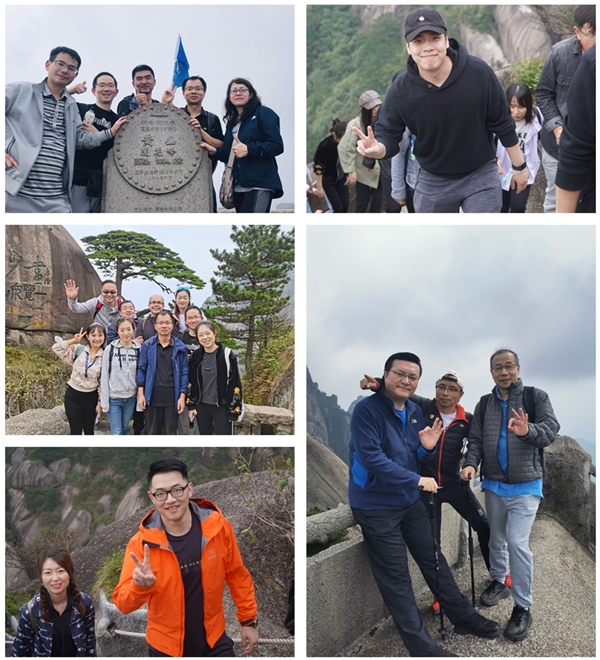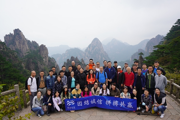 圖:生日晚會掠影 晚餐進行過半,“生日快樂”的歌聲驟然響起,餐廳里的氣氛瞬間活躍起來。生日會上,壽星們在大家祝福的掌聲中收獲了俞總親自贈予的書籍。展卷有益,享受閱讀,快樂生活,這也是集團選擇贈書的寓意所在。這場在黃山下豐樂湖畔舉辦的生日宴會,也讓壽星們在團隊中感受暖暖的人文關(guān)懷。 同心協(xié)力,勇攀高峰 以奇松、怪石、云海、溫泉“四絕”著稱的黃山,是大自然造化中的奇跡,被世人譽為“天下第一奇山”。明代大旅行家徐霞客曾兩次登臨黃山,嘆道:“薄海內(nèi)外無如徽之黃山,登黃山天下無山,觀止矣!”后人據(jù)此概括為“五岳歸來不看山,黃山歸來不看岳”。黃山千米以上高峰72座,“蓮花”、“光明頂”、“天都”三大主峰的海拔均逾1800米。此次團建需要挑戰(zhàn)的主峰則是位于黃山中部的光明頂和蓮花峰。